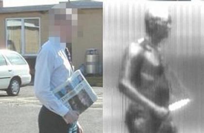 在太赫兹人体安检仪前,报纸下的刀具显露无疑。