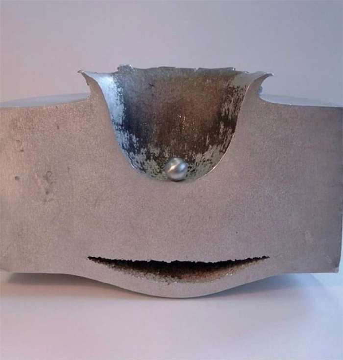 13. 直径1厘米的铝球以超快速度击中一块铝的样子。