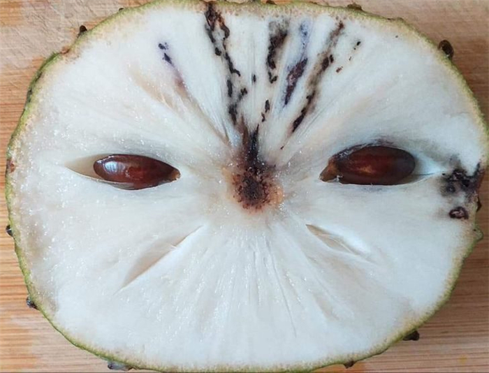 10. 这个番荔枝看起来像猫头鹰。