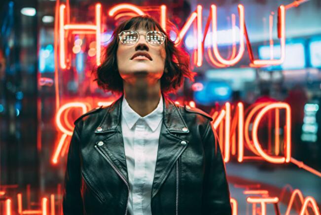 一项研究表示,人格特征较灰暗的人士与偏爱城市而非郊区或乡村之间存在着相关性。图为一女子在霓虹灯下。