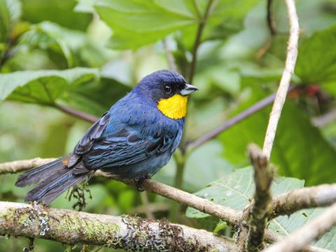 由于森林损失在其范围内,这种紫背彩裸鼻雀(purplish-mantled tanager)应该被归类为面临灭绝的物种。Natalia Ocampo-Peñuela