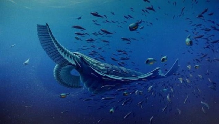 这只像是古代虾子的生物,大约出现在5千2百万年前,长约0.6米,虽然长得像虾子,但食性很像现代的鲸鱼,他们在脸上一样有可以捕获猎物的滤食器官,可以轻易地捕捉浮游生物,在寒武纪是非常独特的生物。