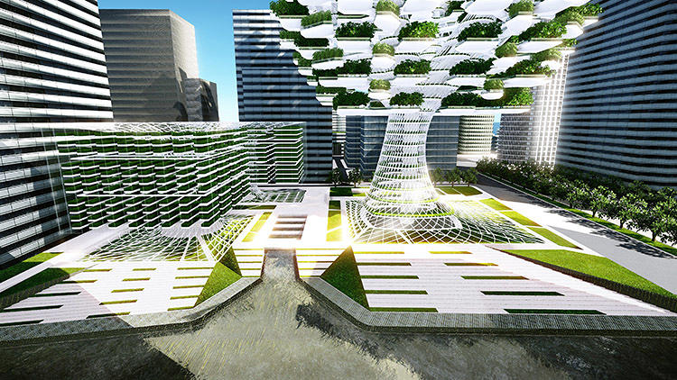 城市天空农场(Urban Skyfarm )除了种植24英亩等量的水果与蔬菜,也收集雨水将它流往已建造的湿地过滤后,再送回附近的小溪,这真的是迄今为止我们看见的最新设计。