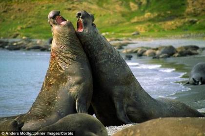 海豹。许多雄性哺乳动物需要通过暴力决斗来赢得雌性,这样可以确保最大、最强雄性的基因传递给后代。