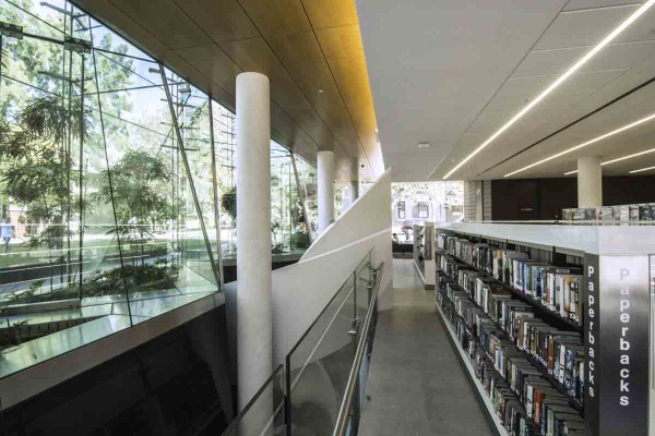 萨里山(Surrey Hills)的图书馆及社区活动中心面向着街道就像个打开着的珠宝盒;里面有小型图书馆、资讯中心、社区活动中心以及托儿所。这意味着降温是有多么地重要,因为每天都会有很多访客。