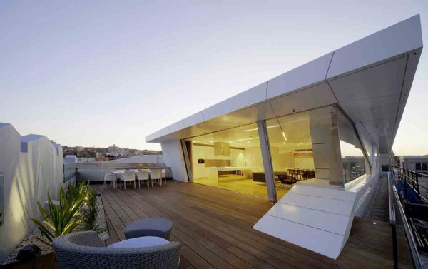 一个在澳洲邦代(Bondi)的玻璃豪华顶层公寓