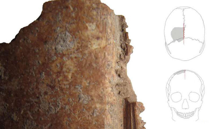 这个团队判定他们所发现带有独特标记的头骨碎片刚好是3个人的,每个都有直线深沟刻在骨头中,而且其中一个还有一个孔钻过头顶。这些沟的深度在0.2到4毫米之间,并且由使用石头工具的人明确地刻出,而不是由另一种动物或其他自然过程造成的。同样地,这些沟被判定是在这个人死后刻的,因为没有出现自然修复的骨头生长。此外,看起来这些沟是在这个人死后不久就被刻的,趁骨骼还依然相当有弹性的时候。