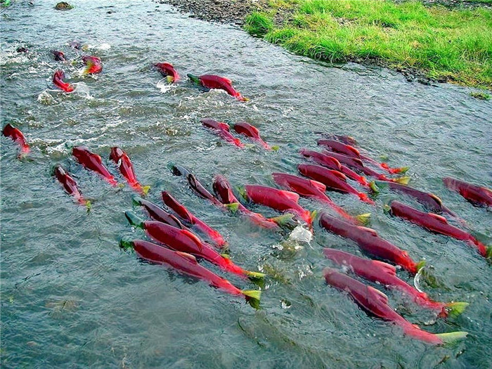 不过在洄游的路途上,鲑鱼需要面对各种天敌的威胁,常常洄游到目的地后便会离.世。产卵期的鲑鱼进入淡水之后,就会停止进食,最后用上最后的生命,把鱼卵埋在河底。