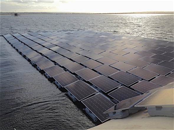 漂浮在水上的太阳能板具有许多好处。其一,相对于固定安装的形式,水上太阳能板可以自然冷却,因为他们就在水上,因此提升电力的生产效率。而且太阳能板也将水面遮蔽,限制了藻类的生长。