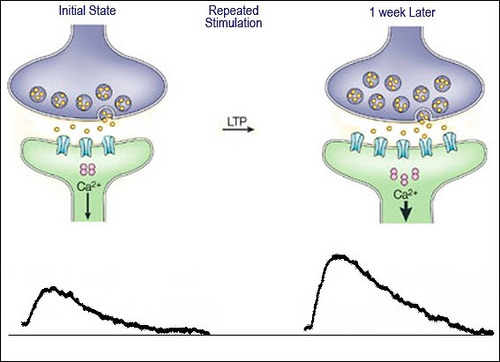 到目前为止,最为人所知的机制之一是增加穿越突触的讯息流强度,这个机制被称为长效增益作用(long-term potentiation,LTP)。