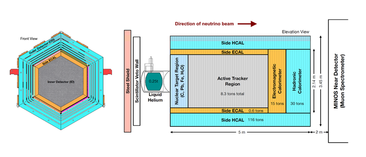MINERvA 实验中的中微子侦测器示意图。图/wikimedia