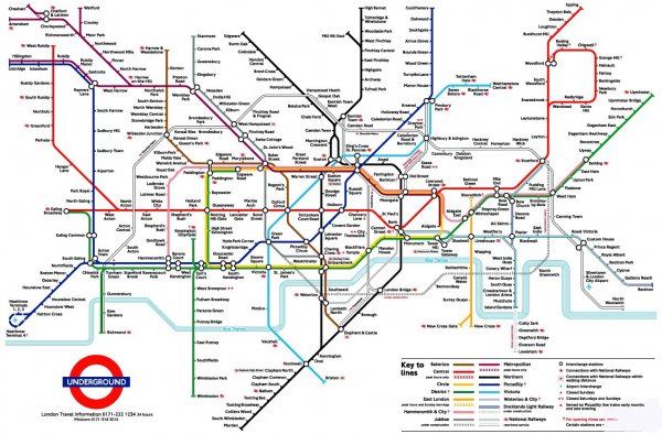 地铁线路分布之广让线路图的制作非常困难。即便在伦敦市中心,站与站之间的距离也大相径庭。比如考文特花园站和莱斯特广场站仅隔200米,而国王十字站和法林顿站却相隔1.85公里远。