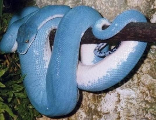 蓝化绿树蟒极其稀有,是绿树蟒基因变异所形成。