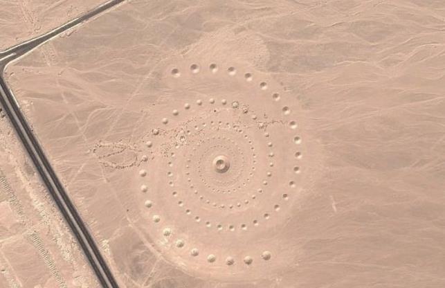 这些像是刻在地球表面的古老艺术,它们可以追溯到8500年前。这张照片中的车轮位于阿兹拉克绿洲,辐条朝向东南西北,可能与冬至日出一致。研究人员发现,轮子的设计各不相同,有些轮子显示出从中心辐射出来的辐条,有些轮子只有一两个杆而不是辐条,还有一些轮子根本不是圆形的,而是正方形、长方形或三角形,至今还无人破解其中的奥秘。