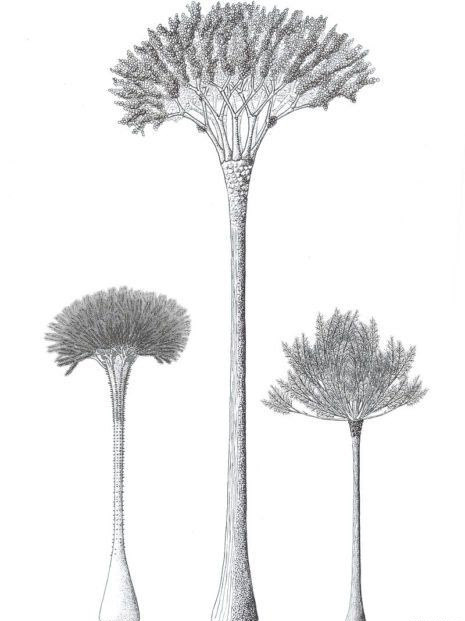 另外还有一个特征,就是它们的金字塔形基座,随着树高的增长会逐渐减少。 这种特性从过去其他化石的Cladoxylopsids的研究中已知,在观察这些植物的插图时可能是最受注意的特征。
