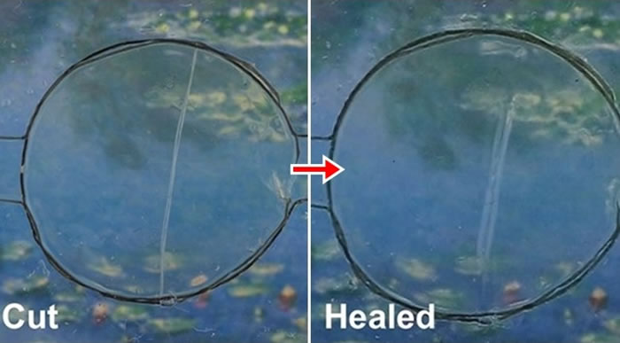 该种物料由加州大学里弗赛德分校(UC Riverside)的研究人员研发,上周于科学期刊《Advanced Material》发表。报告指出,此物料经切割后,只要放在室温中,二十四小时内便能完全修复受损地方。此外,该物料伸缩力特非常强,可以拉长五十倍,加上能够导电,料其应用层面广泛。