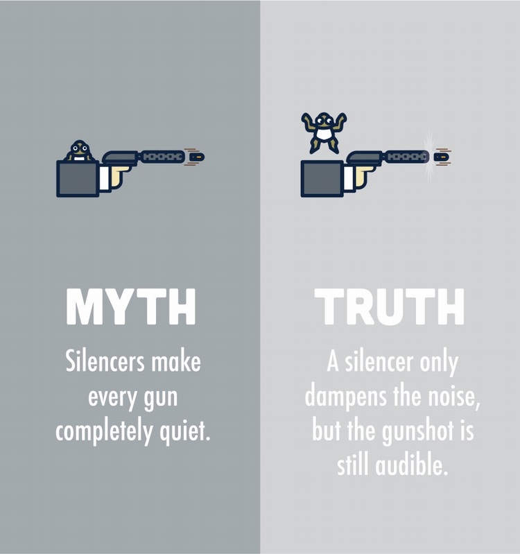 现实:装了消音器只会减少一部份噪音,但还是会听到枪声。