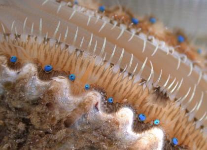 扇贝的视力也很厉害。可能有些人不知道扇贝的眼睛在哪里,如果将扇贝的体型放大,那么我们可以在扇贝外壳的边缘看到两串像珠子一样的结构,那就是扇贝的眼睛。扇贝的眼睛是反射眼,看不清物体的形状,但是能准确感知是否有危险。扇贝的视网膜有两种类型,一种是适应光线的,另一种是适应黑暗的。不管光线强弱,它们每只眼睛后面的反射面都能将光线聚焦在这两个视网膜上,根据光线的变化它们就能感知周围环境的变化。